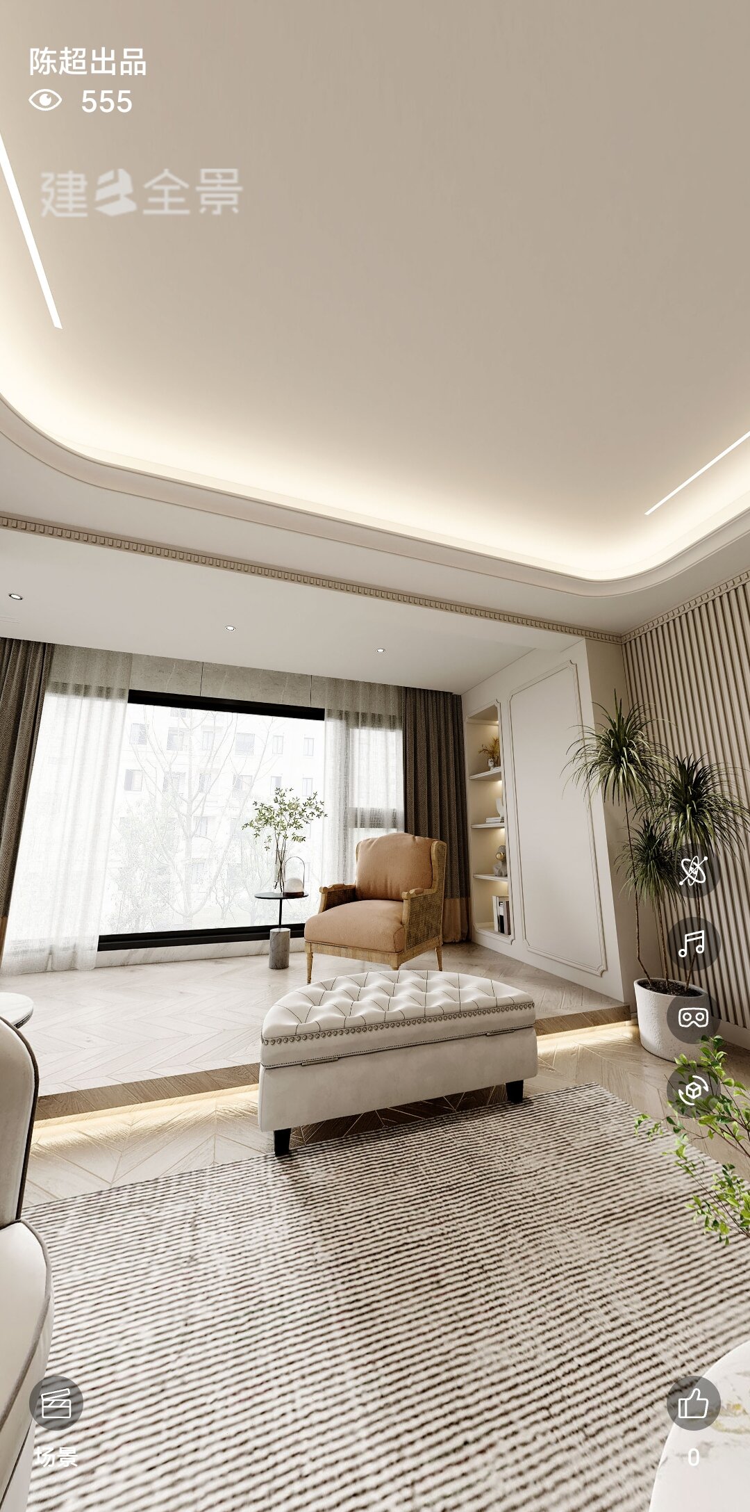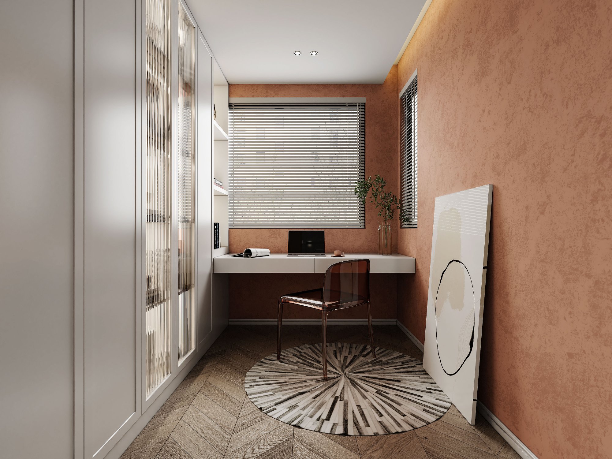 绿意与奶油色的温柔邂逅,轻盈与安稳并存,交织成家的温馨序曲。浅木色悄然融入,家的气息愈发醇厚。