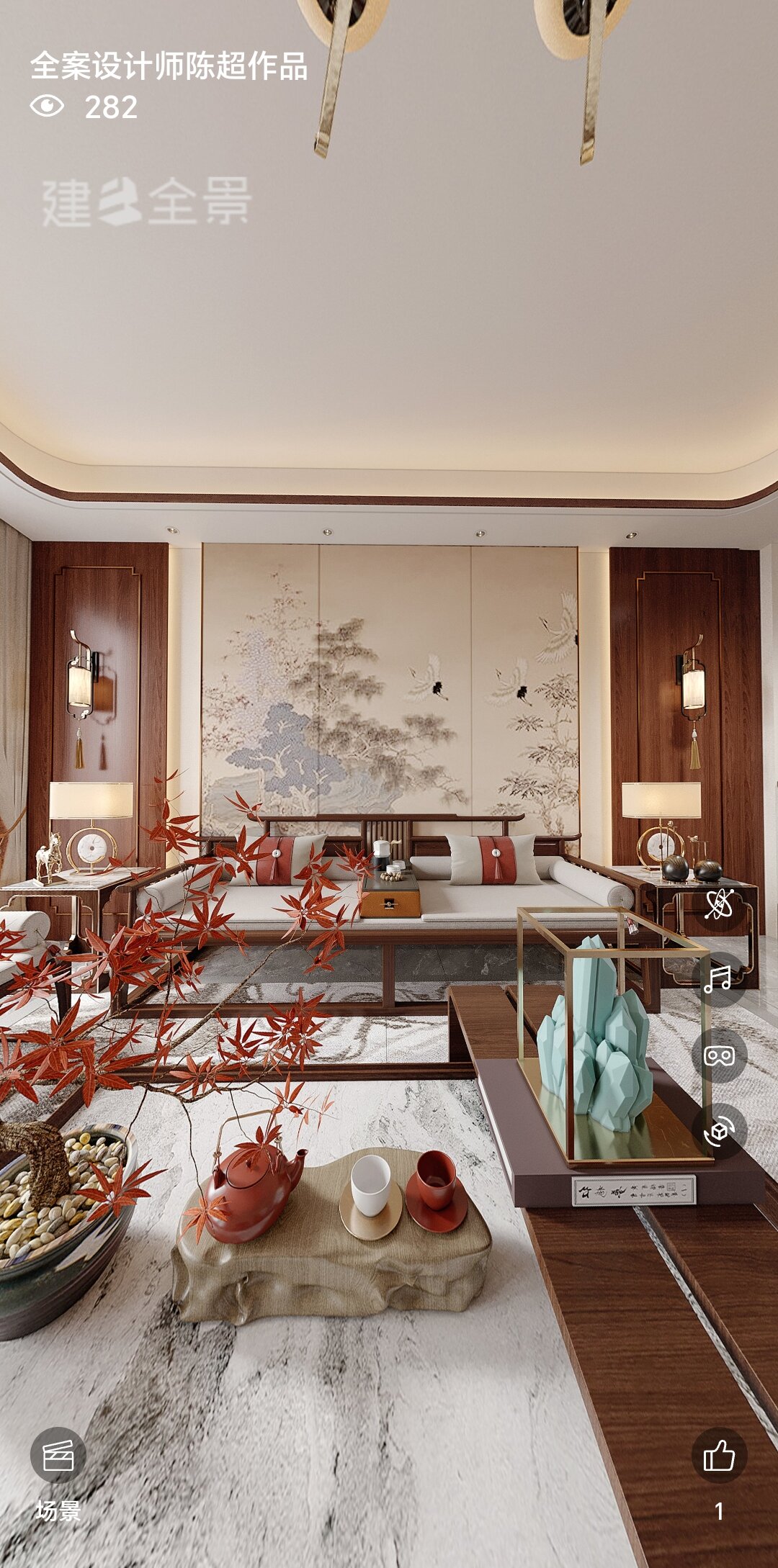 这个新中式风格的案例中,对称空间布局显得格外引人注目。